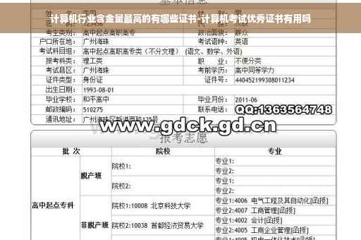 计算机含金量高的证书有:全国计算机等级考试 (NCRE)、计算机技术与软件专业技术资格(水平)考试、全国计算机信息高新技术考试、行业认证、微软认证、思科认证、IBM认证、华为认证。