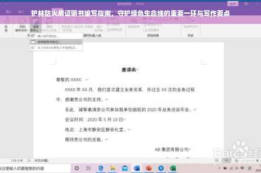 摘要:护林防火房证明书是守护绿色生命线的重要一环,其撰写至关重要。证明书应包含以下内容:一、证明单位的名称及开具时间;二、关于护林防火房建设的地点、时间及其符合相关规定的说明;三、对护林防火房功能及其作用的简述;四、证明该防火房符合相关安全标准,能够有效预防森林火灾的发生。证明书应简洁明了,重点突出,字数控制在100-200字以内。