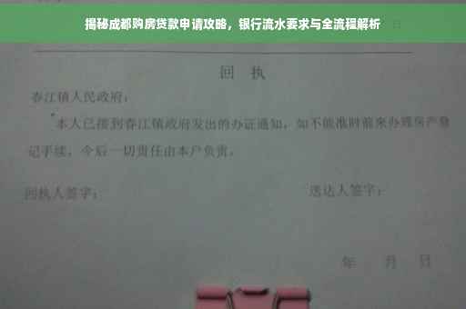 摘要:关于在成都购房的银行流水要求和贷款申请全攻略,揭秘购房贷款过程中的注意事项。购房者需了解银行流水在贷款申请中的重要性,包括准备银行流水的时间要求。本文旨在帮助购房者顺利申请购房贷款,顺利购房。