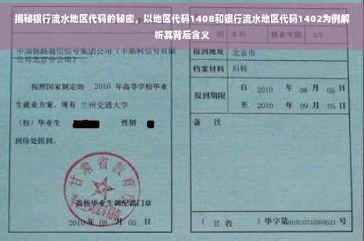在银行流水中,地区代码是一个至关重要的组成部分,地区代码是根据一定的规则和标准划分的,用于标识交易发生的地理位置,以地区代码“1408”为例,它代表着特定的地区或城市,了解地区代码的含义,有助于我们更好地理解银行流水的交易情况,进一步剖析经济活动状况。