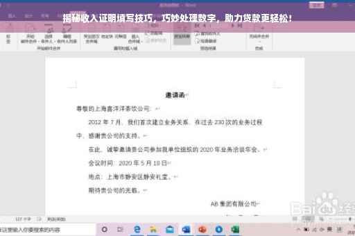 摘要:本文将介绍如何巧妙填写收入证明中的数字,以便更轻松地获得贷款。通过揭秘收入证明的重要性,提供有关填写收入证明数额的建议和技巧,帮助读者在申请贷款时更加得心应手。适当展示个人实际收入情况,同时确保符合贷款机构的要求,从而提高贷款成功率。