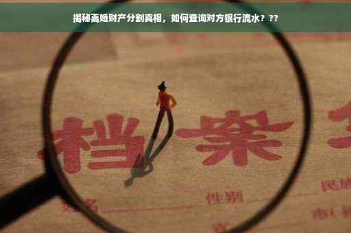 在现代社会,离婚已成为一个普遍现象,在离婚过程中,财产分割是至关重要的一环,对方的银行流水作为财产证据之一,往往成为争议的焦点,本文将围绕离婚时如何获取对方的银行流水、其法律程序及注意事项展开探讨,旨在为读者提供一些参考和帮助。