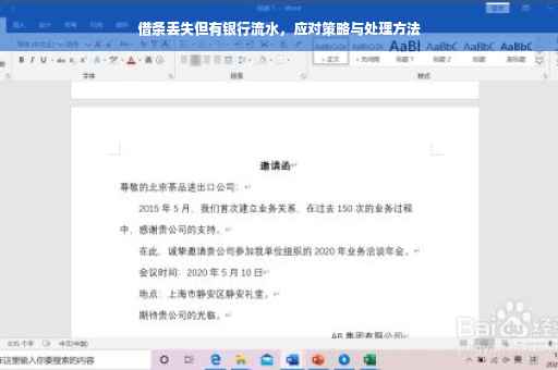 在日常生活中,我们有时会遇到一些意外情况,如借条不慎丢失,面对这种情况,很多人可能会担心自己的权益无法得到保障,但实际上,只要我们掌握了其他证据,如银行流水,仍然可以有效地维护自己的合法权益,以下为您详细解析借条丢失后的应对策略,以及如何巧妙利用银行流水作为重要辅助证据。