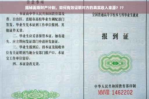 摘要:离婚财产分割中,证明对方真实收入是重要环节。可通过税务记录、银行流水、工资条等文件来证实。若对方有较高收入却拒绝提供财务证明,可申请法院调查令。注意保留对方承认高收入的相关证据,如聊天记录等。确保自身权益,寻求专业律师协助,确保财产分割公正合理。