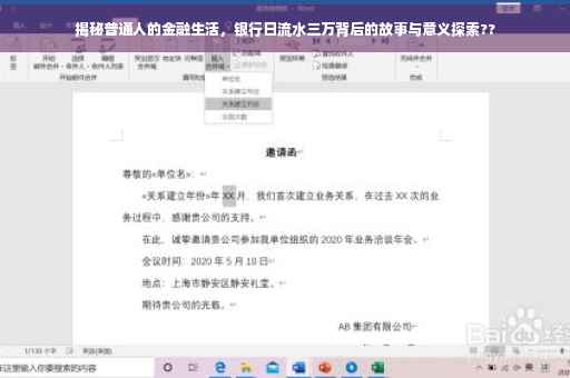 银行日流水三万,正逐渐成为许多人的现实,随着消费升级和收入的增长,人们的金融生活日益丰富,无论是工资、业务收入还是投资收益,银行流水账单上的数字都在不断攀升。