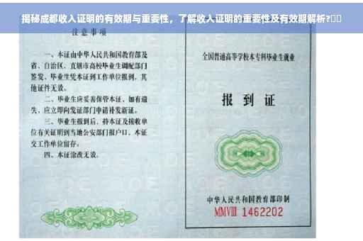 摘要:本文将探讨成都收入证明的有效期和重要性。收入证明对于个人信用评估、贷款申请等方面具有重要意义。本文将揭示收入证明的有效期通常为多久,以及在日常生活和工作中如何充分发挥其效用。阅读本文,您将更全面地了解收入证明的重要性及其在成都地区的实际应用。