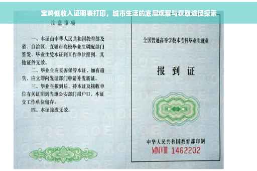 在当今社会,随着经济的不断发展和城市化进程的加速推进,越来越多的人涌入城市寻找发展的机会,城市生活的压力也随之增大,尤其是对于收入较低的人群来说,他们面临着更多的挑战,作为自媒体作者,我有幸接触到许多生活在宝鸡这座城市的人们,他们中有一些人因为各种原因收入较低,需要开具低收入证明表,本文将围绕宝鸡低收入证明表打印这个话题展开,探讨低收入人群的生活现状、政策扶持以及个人奋斗的重要性。