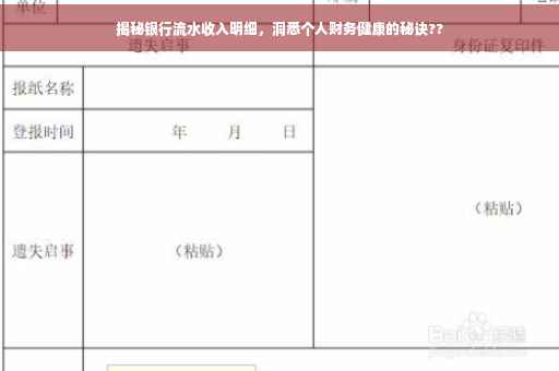 随着个人财富的积累,对财务的把控成为越来越多人的关注焦点,作为记录日常收支的重要文件,银行流水收入明细在财务管理、资金规划及风险控制等方面具有关键作用,本文将详细介绍如何打印银行流水收入明细,并深入解读其中的关键信息,同时探讨如何利用这些信息进行有效的个人财务规划。
