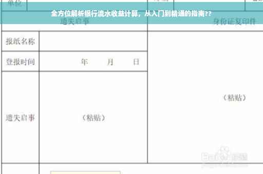 本文不仅详细解析了银行流水收益的概念和计算方法,还通过实际案例和策略分享,帮助读者更好地应用这些知识,希望您在掌握银行流水收益的计算方法后,能在个人理财或企业经营中做出明智的金融决策。
