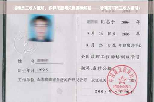 摘要:本文将揭示员工收入证明的多样来源与关键要素,包括薪资、奖金、津贴、股票期权等。文章将指导读者如何撰写员工收入证明,强调证明中需包含的关键信息,如收入来源、金额及时间等。通过解析收入证明的结构和内容,帮助雇主和员工明确证明的目的和重要性。