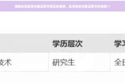 摘要:东莞发烧诊断证明书照片引发关注,背后隐藏着真相。经过调查,这些诊断证明书是真实的医疗文件,用于证明患者发热症状。这些照片的出现也暴露出一些问题,如医疗证明书的滥用和管理不当。相关部门正在调查此事,以确保医疗证明的真实性和合法性,维护公众的健康和权益。