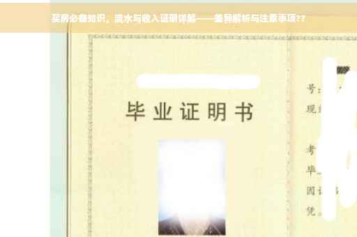 摘要:购房过程中,了解流水与收入证明的重要性是必备知识。流水和收入证明都是评估购房者经济能力的关键文件,但二者有所区别。流水证明主要反映个人或企业的资金流动情况,而收入证明则着重证明个人的收入状况。在申请房贷时,两者都是银行审核的重要参考依据。购房前需了解相关知识,确保顺利购房。
