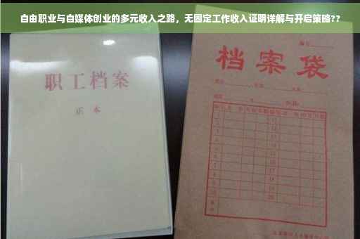 摘要:,,本文将探讨自由职业和自媒体创业者的多元收入之路,介绍在没有特定工作收入证明的情况下如何开展个人业务并取得收入。文章将探讨多种自由职业和自媒体创业的方式,包括写作、设计、咨询、社交媒体运营等,并分享如何有效管理和增长个人收入。文章还将提供一些建议,帮助自由职业者和自媒体创业者解决没有特定工作收入证明的问题。