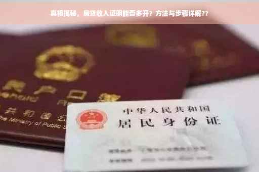 摘要:本文探讨了房贷收入证明能否多开的问题,并揭示了真相。文章指出,根据相关规定和实际情况,收入证明不能随意多开。如有需要,借款人应提供真实有效的收入证明,并遵循银行或其他贷款机构的要求和流程。本文旨在帮助读者了解房贷收入证明的相关知识和规定,以便更好地处理相关事务。