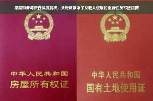 摘要:,,本文将深入探讨家庭财务与责任话题,重点解析父母贷款出示子女收入证明的相关问题。文章将介绍如何撰写收入证明,并强调父母在贷款过程中的角色和责任。文章还将探讨子女收入证明的重要性及其对家庭财务状况的影响。通过深度解析,帮助读者更好地理解家庭财务规划的重要性,以及如何更好地管理家庭财务。
