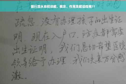 银行流水总和是个人和企业财务管理中的重要概念,对于个人信用评估、企业运营分析等方面具有重要意义,本文详细介绍了银行流水总和的概念、作用以及如何解读,希望能够帮助读者更好地了解这一金融术语,从而更好地进行个人和企业财务管理,在实际应用中,个人和企业应关注银行流水总和的变化情况,合理分析并制定相应的财务策略。
