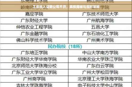摘要:面对工资收入证明公司不开的情况,首先需要了解其中的真相,可能涉及公司内部规定或行政流程等原因。对此,可通过与公司人力资源部门沟通,了解具体不开具证明的原因和要求,同时提供必要的工作证明和身份证明。若沟通无果,可寻求法律援助或咨询专业律师,寻求合法途径解决问题。面对此类问题需冷静应对,寻求合理解决方案。
