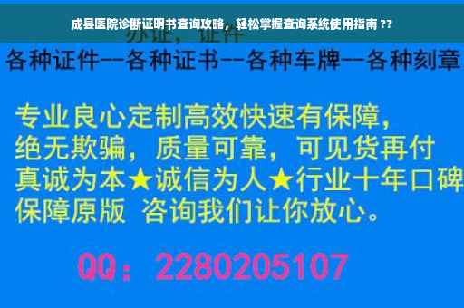 在现代社会,随着医疗信息化的发展,越来越多的医疗文件和证明实现了电子化,成县医院作为当地重要的医疗机构,为广大患者提供了便捷的诊断证明书查询服务,本文将详细介绍如何查询成县医院诊断证明书,帮助患者及其家属更好地了解和使用这一服务。