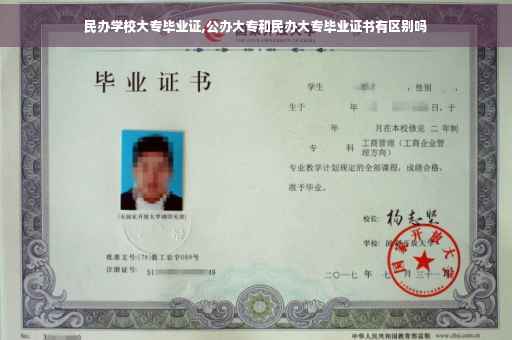 民办大专和公办大专在毕业证书上应该没有太大的区别,因为大专毕业证书上不可能出现是什么性质的学校,只有大专院校的全称,还要加上大专院校校长的签名章,所以,从大专毕业证书上看不出来是公办还是民办,可能在人们的心中会有民办或公办的概念。