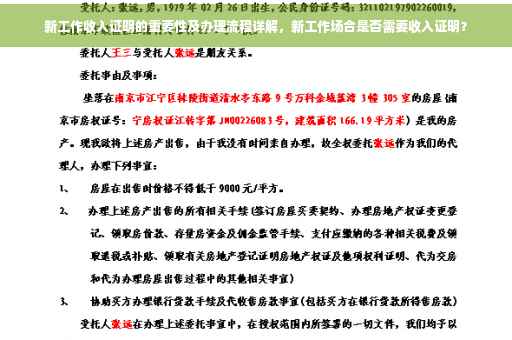 随着社会的快速发展,我们时常需要面对工作的变动与调整,当我们迈向新的工作岗位时,许多情况下都需要提供收入证明,收入证明对于新工作而言至关重要,它不仅是展示个人经济能力的体现,更是用人单位评估个人信用及稳定性的重要依据,本文将详细介绍新工作收入证明的重要性及办理流程。