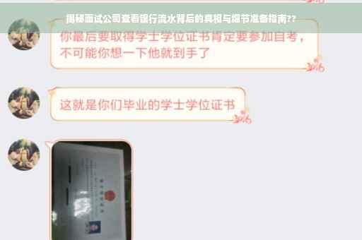摘要:面试公司查看银行流水是评估候选人财务状况和稳定性的重要手段。公司通过分析银行流水,了解候选人的收入来源、支出模式及经济压力承受能力。了解公司查看银行流水的真实意图,有助于候选人更好地准备面试,展示自身经济实力和稳定性。本文将揭示面试公司查看银行流水的背后真相,并提供相关建议,帮助求职者成功应对面试中的财务评估环节。