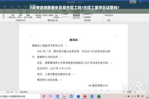 大专进铁路乘务员是合同制职工。不论是大专毕业生,还是大本毕业生,只要进铁路单位,签订的合同都是合同制员工,无一人例外。每位进铁路的新职工,都会与本单位签订劳动合同,劳动合同包括五险两金及相关事宜。铁路新老职工都有签订劳动合同的程序,所以铁路所有员工都是合同制。