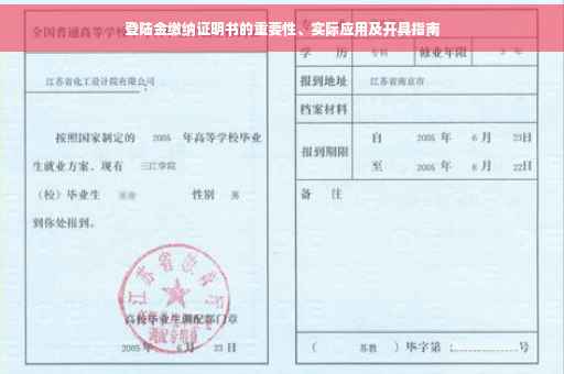 在当今社会,随着经济的发展和人们法治意识的提高,各类证明文件的真实性、合法性越来越受到重视,登陆金缴纳证明书作为一种重要的证明文件,广泛应用于各个领域,本文将详细介绍登陆金缴纳证明书的作用、应用场景及其重要性,以帮助大家更好地理解和运用。