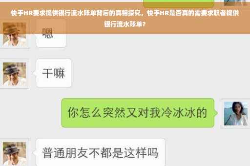 摘要:快手HR要求员工提供银行流水账单的做法引起了广泛关注。背后的真相究竟为何?本文探讨了快手HR要求提供银行流水账单的原因,包括核实员工薪资、保障公司利益以及规范内部管理等。也提醒广大求职者对此类要求保持警惕,确保个人隐私和权益不受侵犯。本文旨在揭示这一现象的真相,并引导公众理性看待。