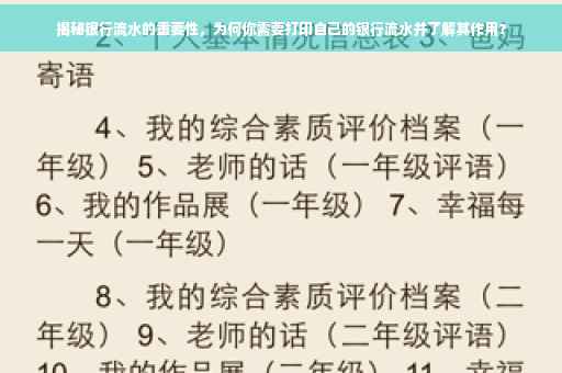 在当今社会,随着金融行业的快速发展,越来越多的人开始关注自己的财务状况,在这个过程中,银行流水作为重要的财务证明文件之一,扮演着至关重要的角色,为什么我们需要去银行打印流水呢?本文将为大家详细解析银行流水的重要性,并告诉大家如何正确获取银行流水。