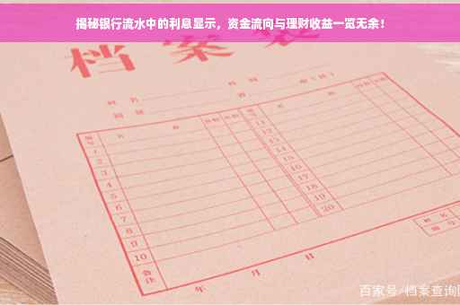 随着金融市场的日益繁荣,越来越多的人开始关注自己的资金流向和理财收益,银行流水作为记录个人或企业资金往来的重要文件,在其中扮演着至关重要的角色,本文将详细介绍银行流水如何显示利息信息,并深入探讨其背后的原因和含义,助你更好地解读银行流水,做出更明智的财务决策。