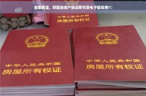 在现代社会,户籍证明书是证明个人身份、办理各类事务的重要文件,对于需要在蚌埠地区办理相关事务的人们来说,了解如何获得蚌埠户籍证明书显得尤为重要,本文将详细介绍获得蚌埠户籍证明书的流程、所需材料、注意事项等,帮助读者顺利完成相关手续。