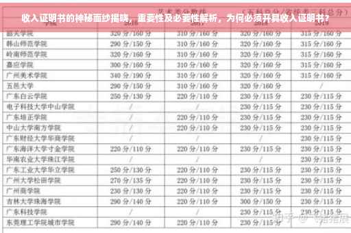 摘要:本文将揭开收入证明书的神秘面纱,探讨其重要性和必要性。通过深入了解收入证明书的作用,读者将明白为何在申请贷款、信用卡或租房等场合需要开具收入证明书。本文将介绍收入证明书的作用,包括证明个人经济状况、提高信用评级等。还将探讨如何正确开具收入证明书以及注意事项,帮助读者更好地利用这一重要文件。
