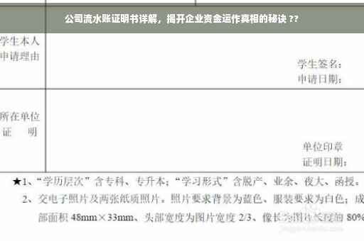 在当今社会,企业经营的透明度和公信力越来越受到关注,作为自媒体作者,我深知信息的公开和透明对于企业的健康发展至关重要,本文将围绕公司流水账证明书展开讨论,揭示企业资金运作的真相,帮助大家更好地了解企业的财务状况。