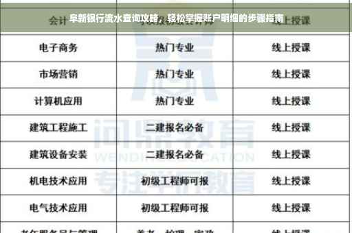 随着互联网技术的发展,个人财务管理愈发重要,作为致力于为客户提供优质服务的阜新银行,我们深知您可能需要经常查询自己的银行流水,本文旨在为您详细介绍阜新银行流水查询的多种途径,助您轻松掌握账户明细,更好地管理个人财务。