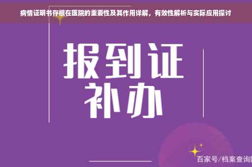 在当今社会,随着医疗行业的快速发展,医疗证明书的存在及其重要性日益凸显,病情证明书存根在医院,对于患者、医疗机构以及社会各方面都具有不可替代的价值,本文将从多个角度探讨病情证明书存根在医院的意义和作用。