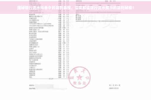 随着经济的迅猛发展和个人财务的日益复杂化,银行流水账单已成为记录个人或企业收支情况的关键文件,深入分析银行流水账单,能帮助我们更准确地掌握个人或企业的盈利状况,本文将详细介绍如何通过银行流水账单洞悉盈利真相。