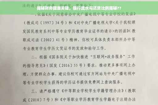 在当今社会,随着经济的发展和个人财务的日益复杂化,越来越多的人开始关注自己的财务状况,银行流水和还贷比例作为衡量个人财务健康的重要指标,对于个人理财、贷款申请等方面具有重要意义,本文将详细介绍银行流水和还贷比例的概念、计算方法,并探讨它们之间的关系,以帮助读者更好地了解自己的财务状况。