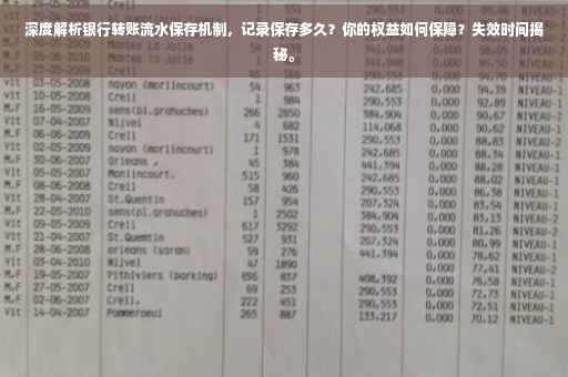 随着电子支付和在线金融的普及,银行转账流水作为个人或企业金融交易的重要记录,其保存时长及查询方式日益受到关注,本文将详细解析银行转账流水保存多久这一问题,帮助读者了解银行记录保存机制,并保障个人权益。