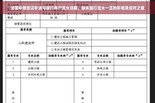 摘要:本文将详细介绍法国申根签证申请过程中关于银行账户流水的具体要求,包括银行流水的重要性以及缺少一页可能带来的影响。提醒申请人注意银行流水的完整性,以确保签证申请顺利。