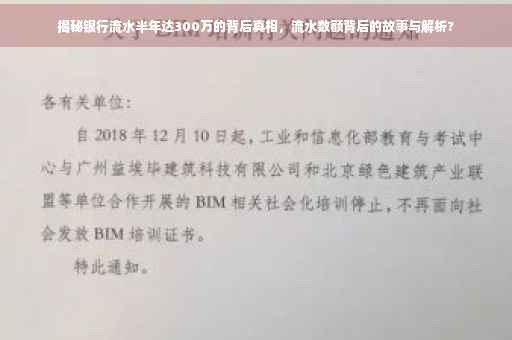 银行流水半年达300万背后隐藏着许多故事与真相,我们需要理性看待这一现象,关注收入来源的合法性和稳定性,同时警惕潜在的风险,通过不断提升个人能力和适应市场变化,我们才能实现更高的银行流水并应对各种挑战。