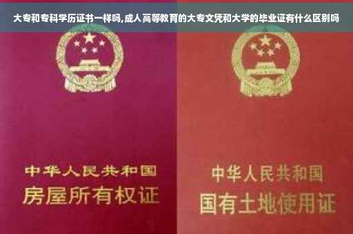 区别很大。证书样式就不一样。毕业证书上明显有“成人高等教育毕业证书”和“普通高等教育毕业证书”字样。证书效力也不一样。一般公务员报考。招村官、支援边区、等都明确只招普通高等教育毕业生。参军入伍的特殊待遇也只针对普通高校毕业生。企业录用一般区别不大,但一些企业还是强调只招全日制高校毕业生(就是普通高校毕业生)。其他方面,如从业以后的提升聘用晋职晋级工资待遇就都一样了。