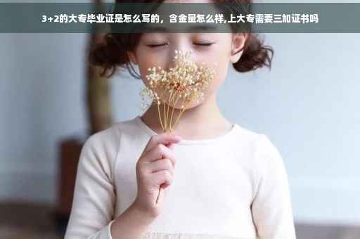 3+2大专是中专学校开设的一种班,就是初中毕业生在中专报名读五年书就可以直接拿大专毕业证了,其实是成人高考大专毕业证,只有通过对口高职进入的大专才是全日制,所以3+2的大专毕业证是成人高考大专毕业证,含金量不如全日制。