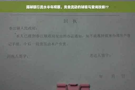 摘要:本文将揭示如何查询银行半年的流水记录,通过简单的步骤洞悉资金流动的秘密。了解银行流水的重要性,掌握查询方法,包括网上银行、手机银行及柜台查询等渠道。通过查看半年的银行流水,帮助个人和企业更好地管理资金,确保财务安全。