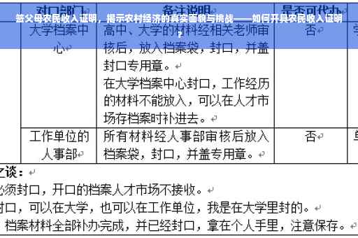 摘要:本篇内容主要关于签父母农民收入证明的重要性,旨在揭示农村经济的真实面貌与挑战。文章将探讨如何开具父母作为农民的收入证明,同时反映农村经济发展中存在的问题和困难。通过深入了解农村经济的现状,为推进农村经济发展提供有益参考。