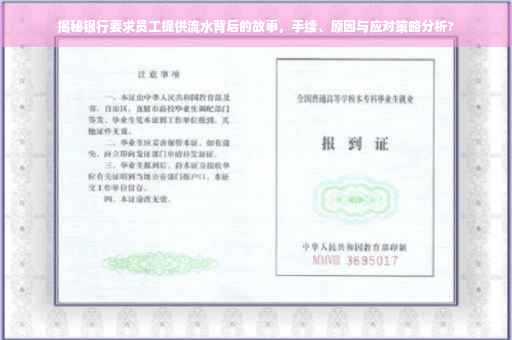 摘要:银行要求员工提供流水的原因在于核实员工收入状况,确保贷款或其他金融业务的风险控制。背后故事涉及员工隐私和信息安全问题,需要银行采取合法合规手段获取员工授权同意。应对之策包括了解银行要求的具体手续,如提供有效证件、签署授权书等,同时保护个人隐私不受侵犯。银行要求员工提供流水时,应严格遵守相关法律法规,确保透明公正。