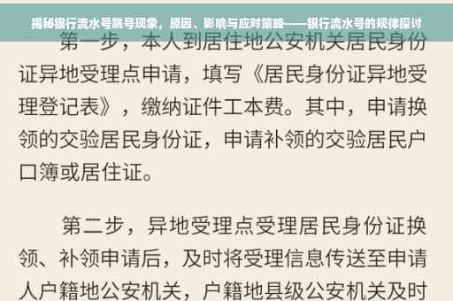 随着金融科技的飞速发展,银行业务日益繁忙,银行流水号作为银行业务的重要标识之一,其连续性、准确性对于银行业务的正常运行至关重要,在实际业务操作中,银行流水号跳号现象时有发生,本文将围绕这一现象展开分析,探讨其产生的原因、影响以及应对策略。