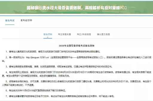 随着经济的发展和个人财富的累积,个人财务问题逐渐受到广泛关注,银行流水作为个人经济活动的重要体现,更是备受瞩目,近期社会上流传着一种说法,即银行流水过大可能需要缴税,这一传闻让许多人感到困惑和担忧,本文将围绕这一主题,深入解析银行流水过大的税务问题及其应对策略,带领读者全面了解相关情况。