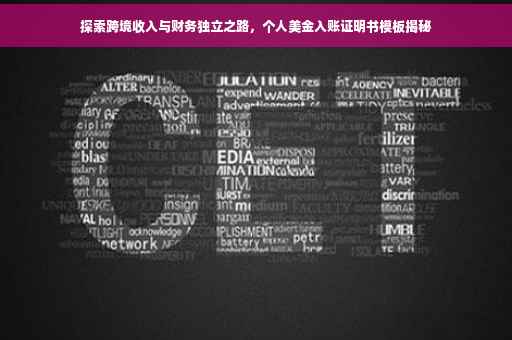随着全球化的持续推动,国际贸易逐渐成为人们关注的焦点,越来越多的人开始涉足这一领域,享受跨境收入的便利,作为一名自媒体作者,我也有幸逐渐接触到这一领域,并成功实现个人美金入账,本文将详细记录我的跨境收入经历,分享美金入账证明书的重要性及办理过程,同时探讨个人财务独立的意义和策略,以及美金入账与自媒体行业的紧密关联。