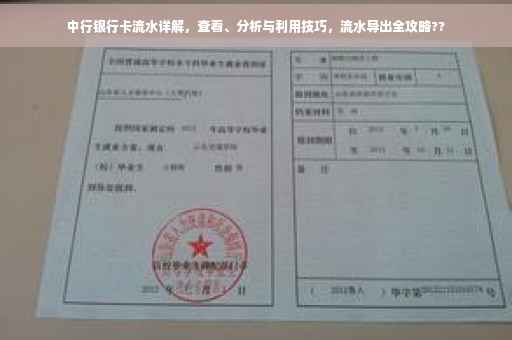 摘要:本文将详细介绍中行银行卡流水的查看、分析与利用方法。包括如何导出银行卡流水,让读者了解流水的具体内容以及如何正确解读。通过本文,您将学会有效管理个人财务,更好地理解银行交易记录的重要性。