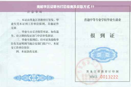 摘要:关于南邮学历证明书的打印问题,学生需前往南京邮电大学相关部门进行申请和获取。具体的打印流程包括提交相关证件和证明,经过学校审核后,学生可在指定地点领取或进行在线打印。南邮学历证明书是证明学生在校期间学习成果的重要文件,对于个人职业发展具有重要意义。